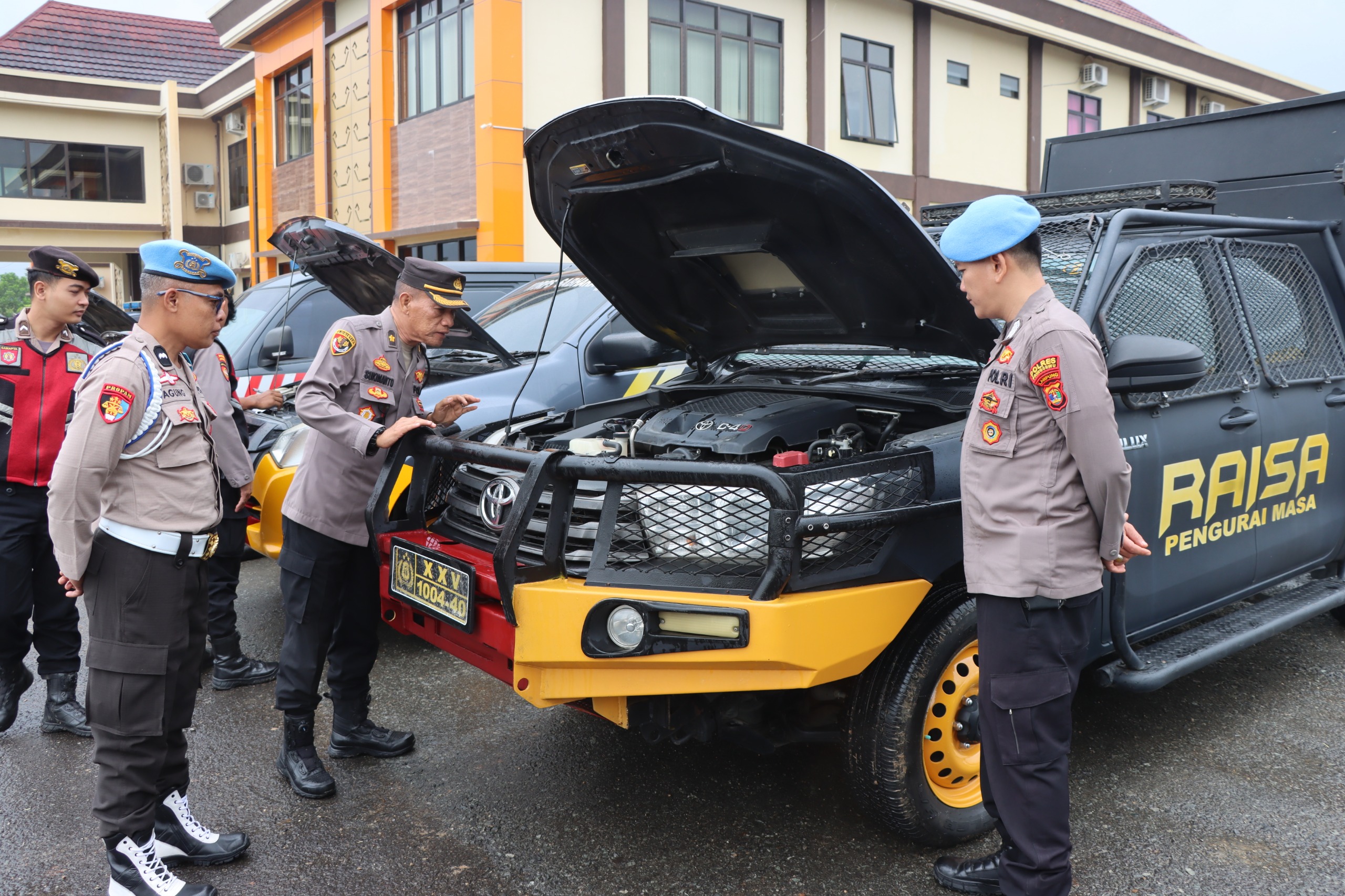 Satu per satu kendaraan operasional disisir. Mulai dari kondisi mesin, kelengkapan administrasi, hingga kelayakan fisik kendaraan tak luput dari pengecekan. Langkah ini dilakukan untuk memastikan seluruh sarana pendukung tugas kepolisian dalam kondisi siap pakai.