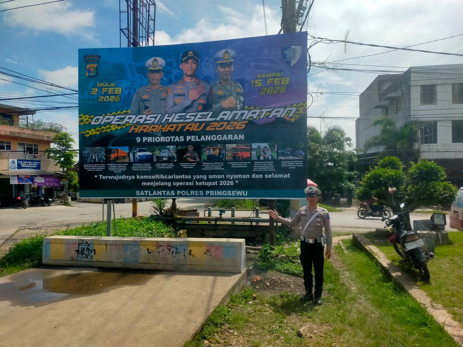 Kasat Lantas Polres Pringsewu Iptu I Kadek Gunawan mengatakan pemasangan banner merupakan bagian dari strategi preventif Operasi Keselamatan Krakatau 2026. Polisi ingin menghadirkan pengingat visual yang terus “berbicara” kepada pengendara.