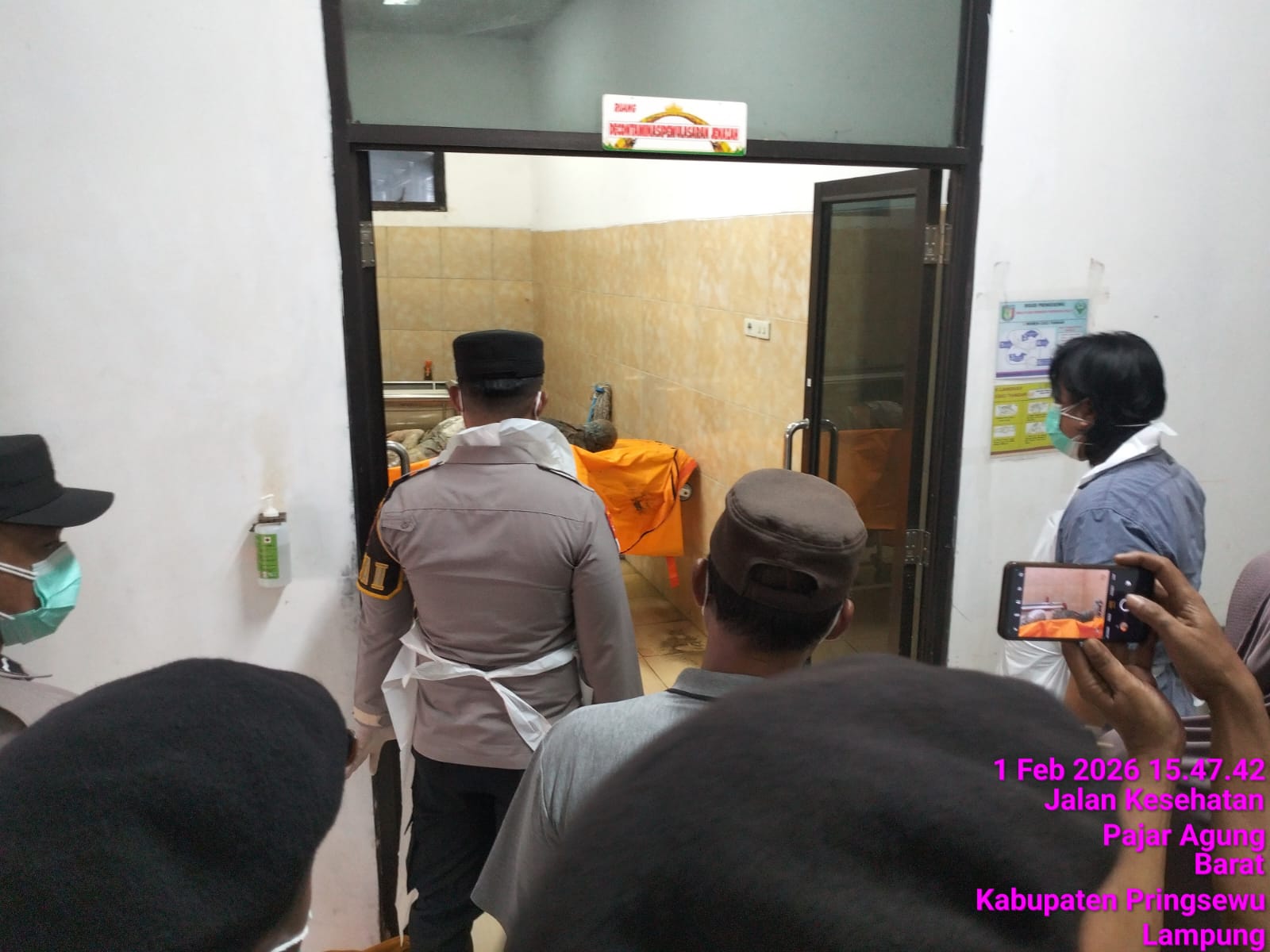 Peristiwa bermula saat piket siaga layanan 110 Polres Pringsewu menerima laporan warga mengenai adanya sesosok tubuh yang mengapung di sungai. Menindaklanjuti laporan tersebut, personel Polres Pringsewu yang dipimpin Pamapta II Ipda Basilius bersama Tim Inafis dan piket fungsi segera bergerak menuju lokasi.