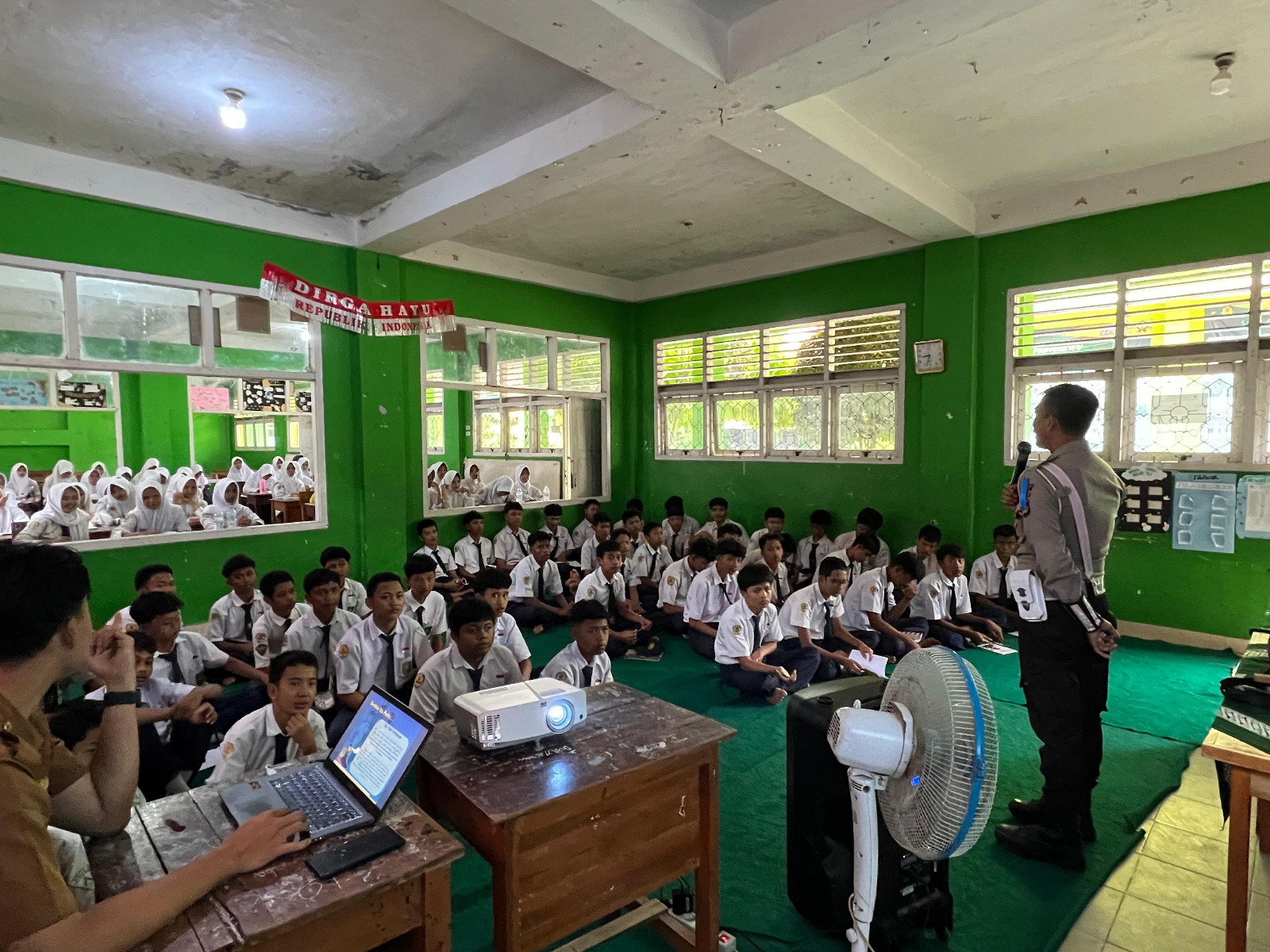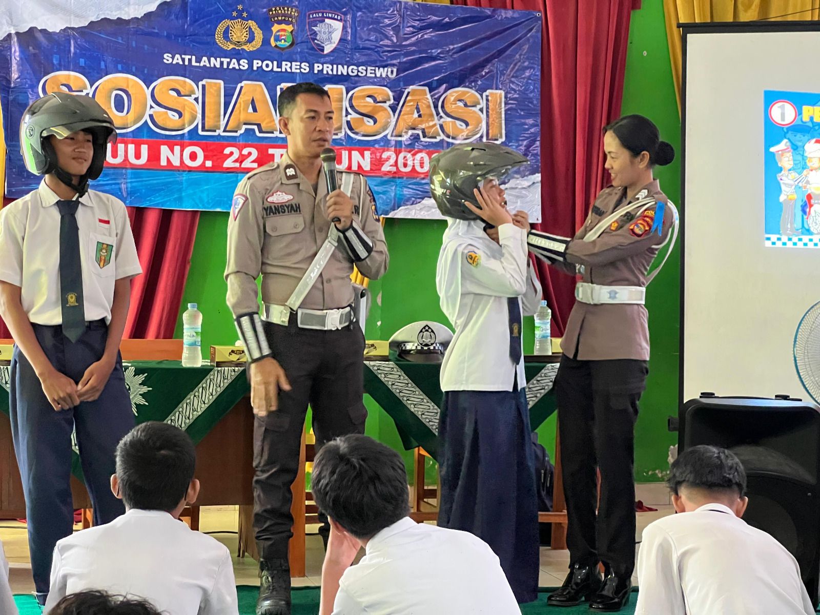 Untuk menekan risiko kecelakaan sejak dini, polisi turun langsung ke sekolah. Kali ini, edukasi keselamatan lalu lintas digelar secara tatap muka di sejumlah sekolah salah satunya di SMP Muhammadiyah Pringsewu, diikuti hampir 100 siswa dari perwakilan beberapa kelas dengan pendampingan guru.