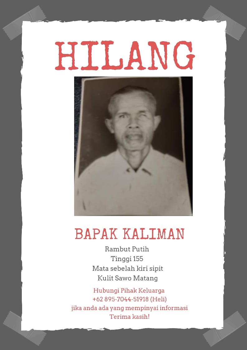 Hingga berita ini ditulis, tim gabungan masih terus melakukan pencarian. Warga yang mengetahui atau melihat keberadaan Mbah Kaliman diminta segera melapor kepada petugas.